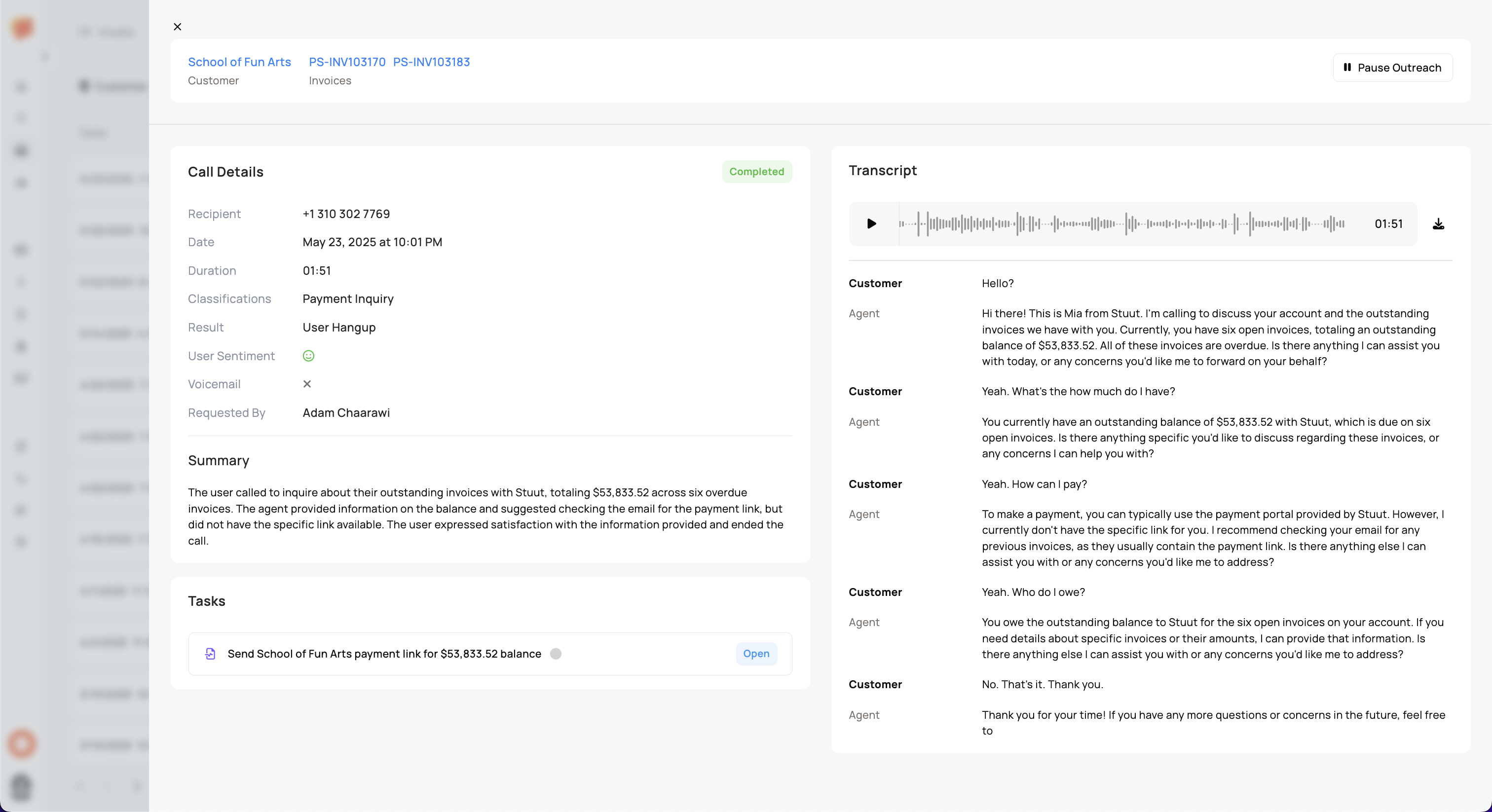 We've added call summaries and any associated tasks to the call page.