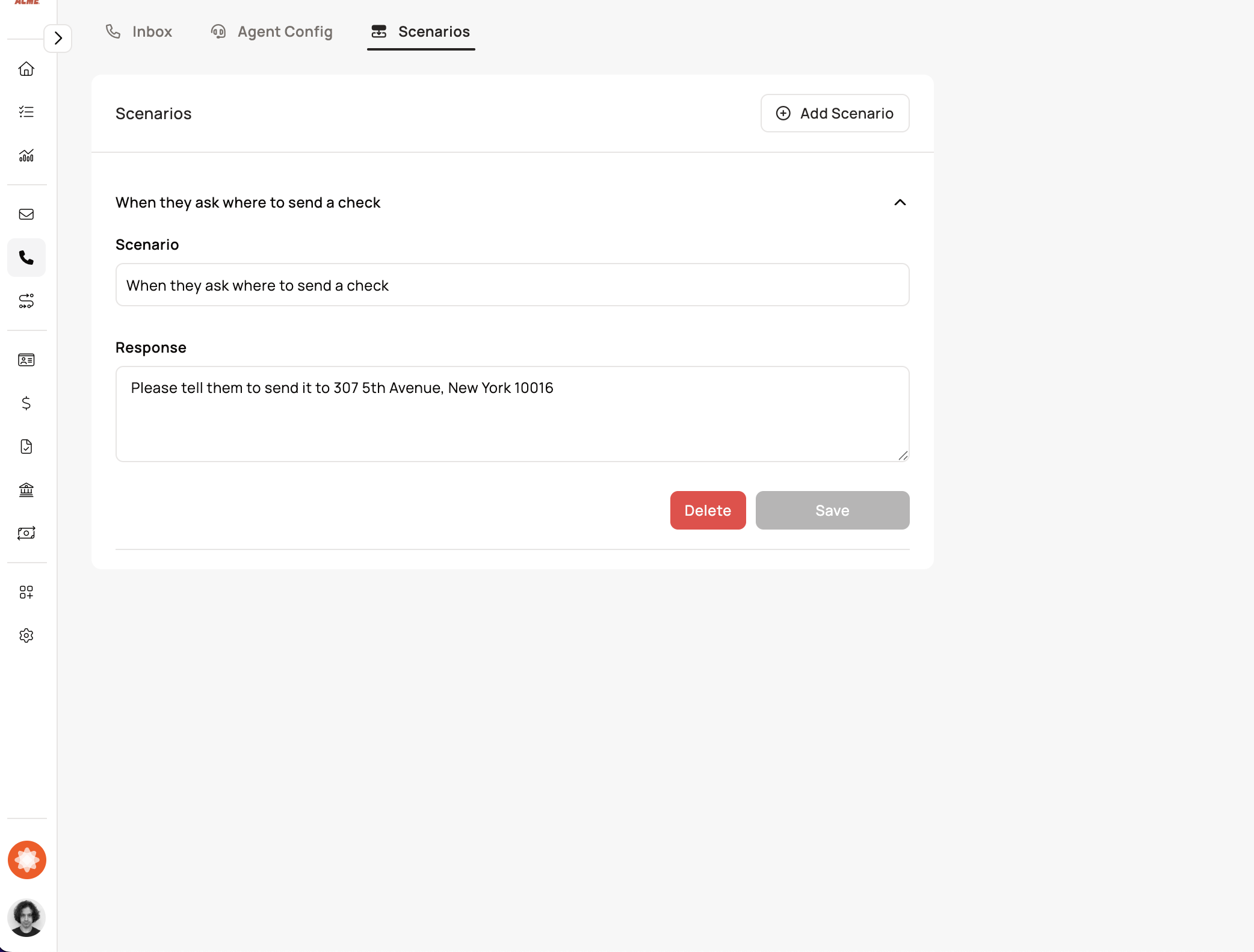 You can now define custom scenarios that guide how the AI agent responds during calls. Whether it's handling a payment inquiries, managing support escalation, or answers various questions, you can configure tailored flows for each situation. These scenarios ensure the AI agent behaves appropriately, stays on-brand, and delivers consistent, context-aware conversations across all call types.